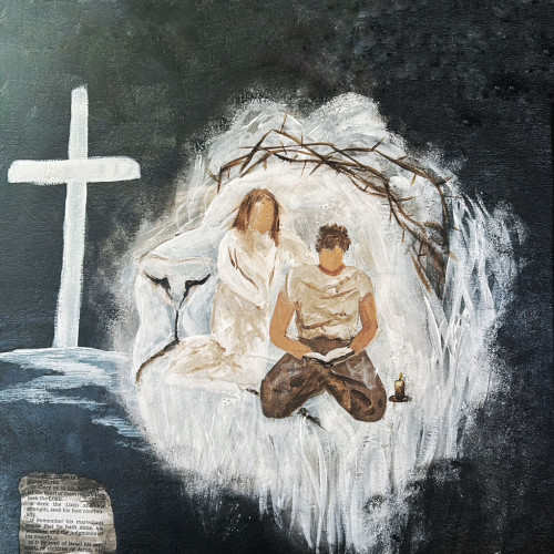 This hand-painted piece reflects the quiet depth of prayer and surrender. Intimacy with God invites a moment of stillness, capturing the closeness found in honest communion with the Father. Created as a visual meditation on trust, obedience, and divine presence, this artwork serves as a reminder that true intimacy with God is formed in moments of vulnerability and prayer.